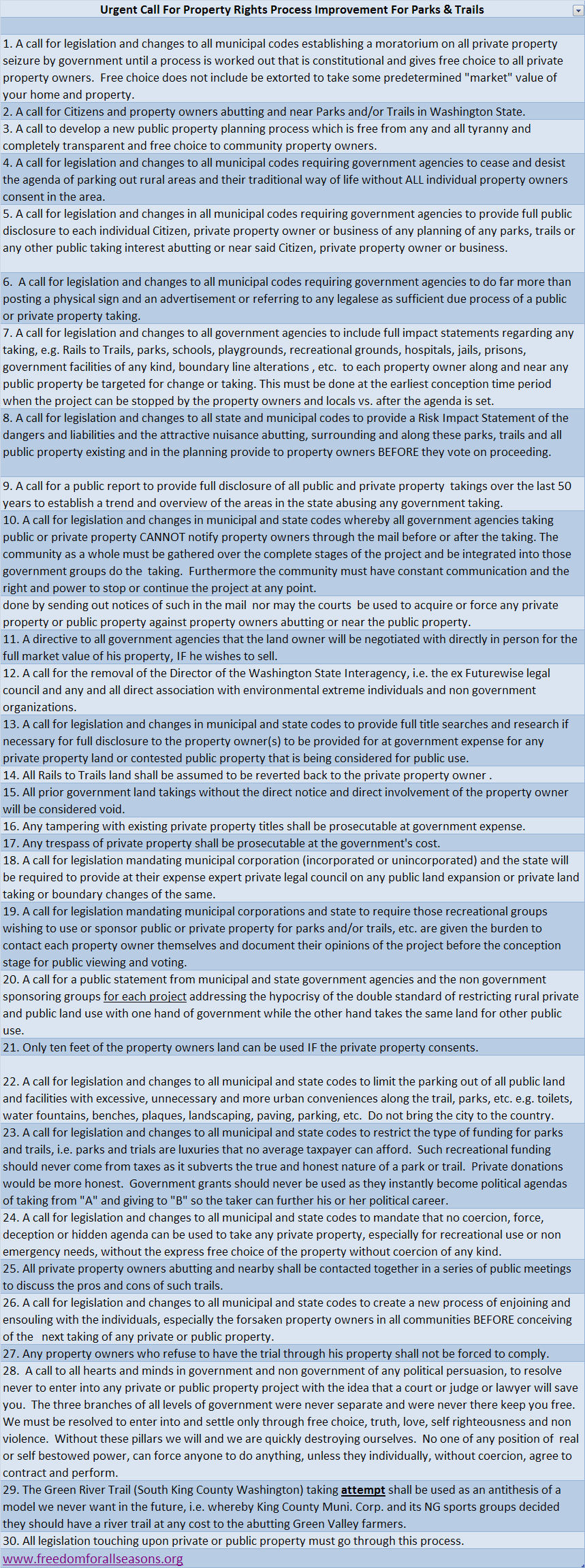 - Urgent Call For Property Rights Process Improvement For Government Parks & Trails