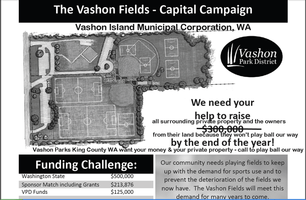 DO NOT "HELP" VASHON MUNICIPAL PARK DISTRICT TO TAKE MORE PROPERTY. If you have donated demand your money back.