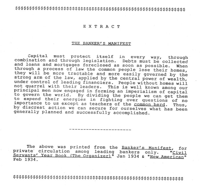 practices of the moneyed vultures who control it." -